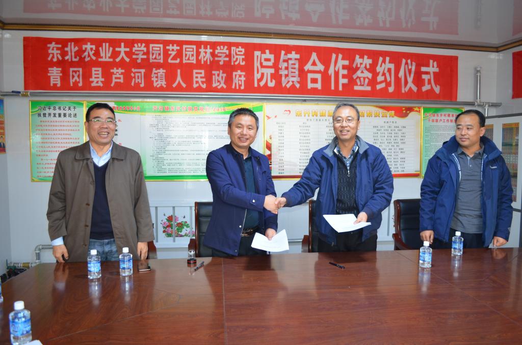 我校304am永利集团官网与青冈县芦河镇政府签订院镇合作协议10月23日,304am永利集团官网院长王傲雪、副院长闫永庆、园林实验中心主任陈旭一行3人,到我省青冈县芦河镇调研当地蔬菜种植与苗木花卉种植情况,并与芦河镇政府签订了院镇合作共建协议,与青冈县启有苗木花卉专业合作社签订了共建校外实验实习基地合作协议。